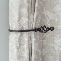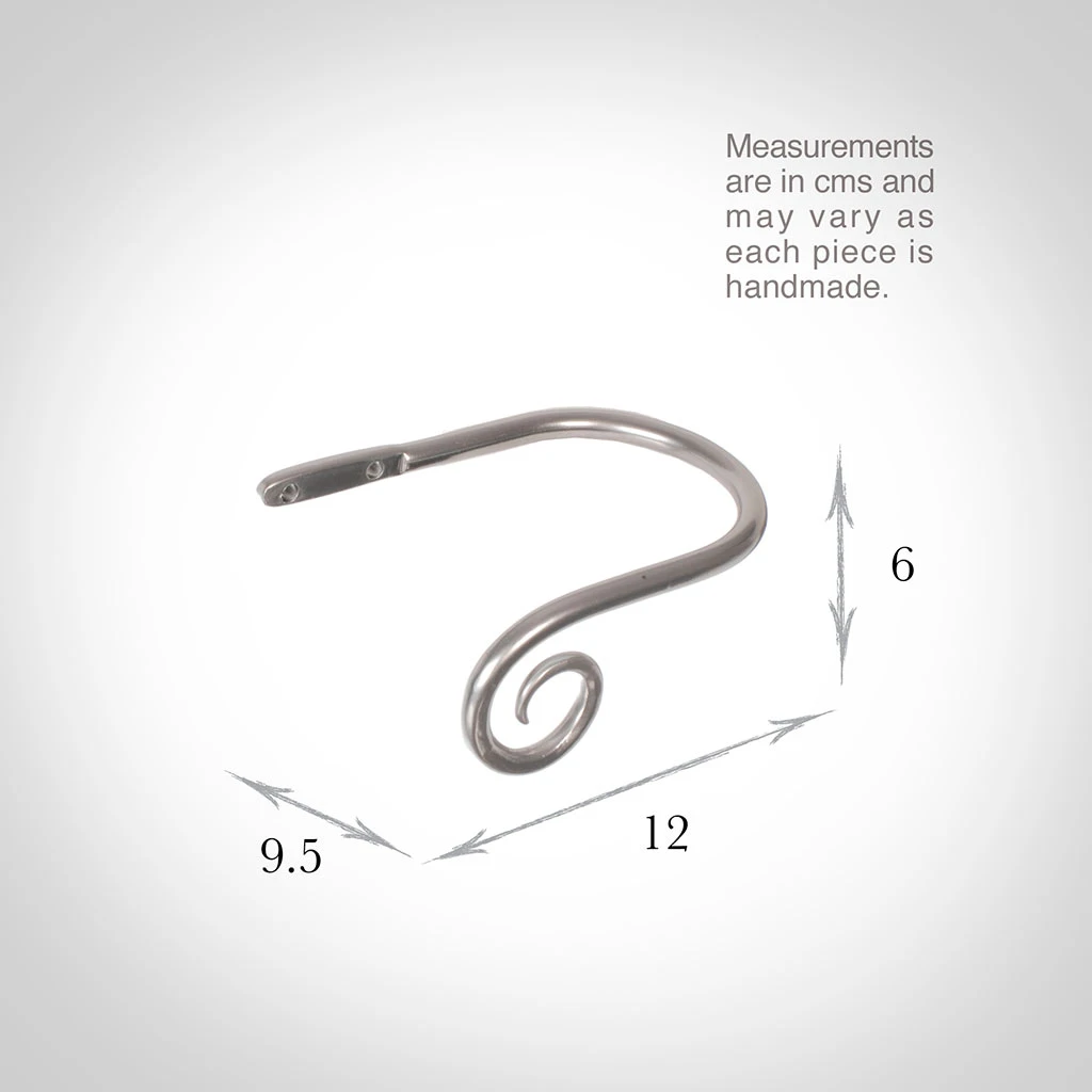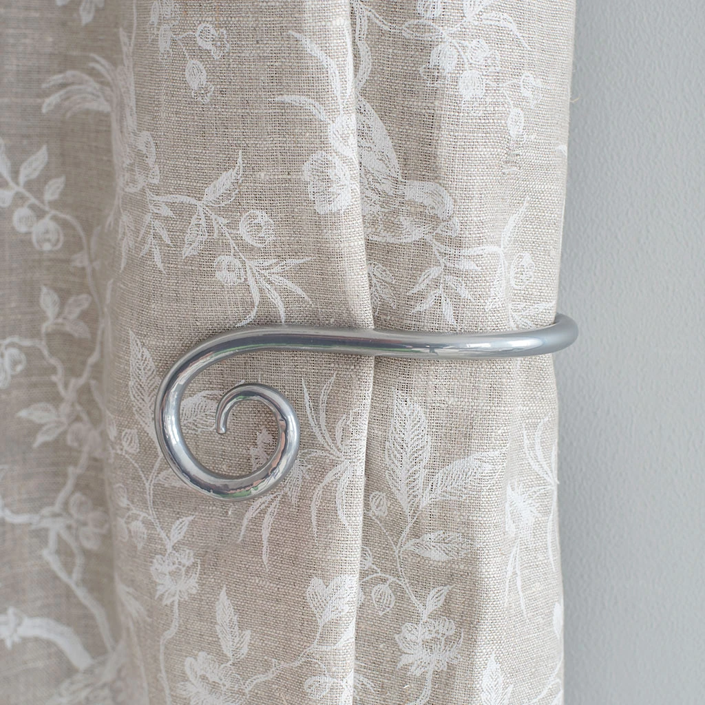 A hand forged, solid steel holdback to match our Crook finial. The holdbacks are available in two sizes: this smaller holdback is generally recommended where there is only one width of fabric in the curtain (or more if it is a very light, unlined fabric).